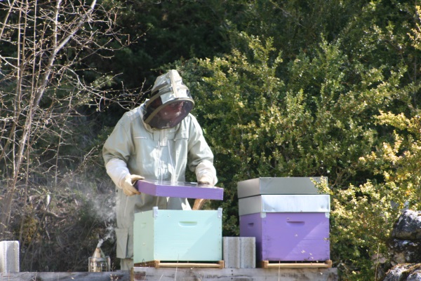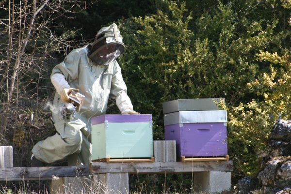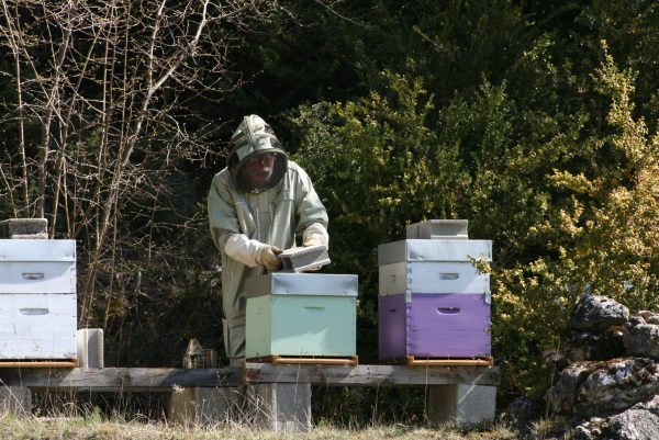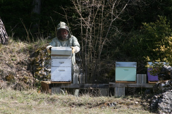 Il n’est pas mécontent , une seule ruche a péri cet hiver. Les quatre autres semblent avoir du tonus.