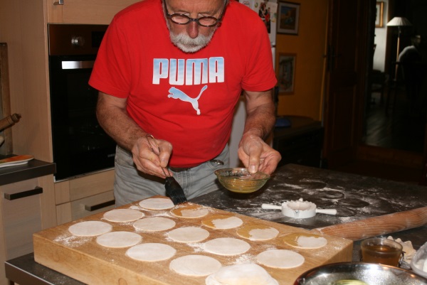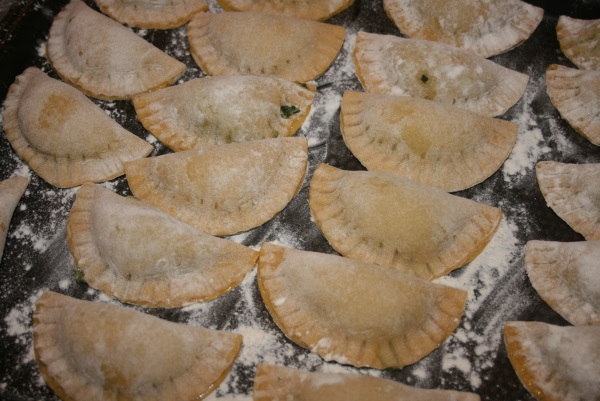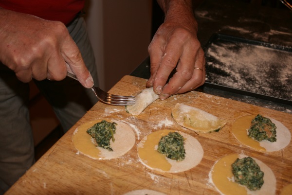 Déposer un peu de farce sur la pâte ,puis plier le ravioli et à l’aide d’une fourchette écraser la bordure