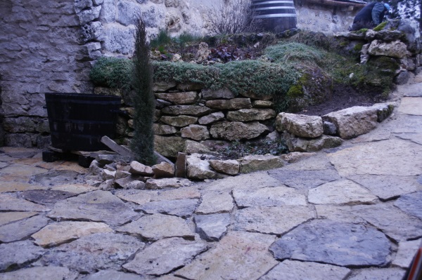 La petite terrasse en pierres est bientôt prête à vous accueillir.
